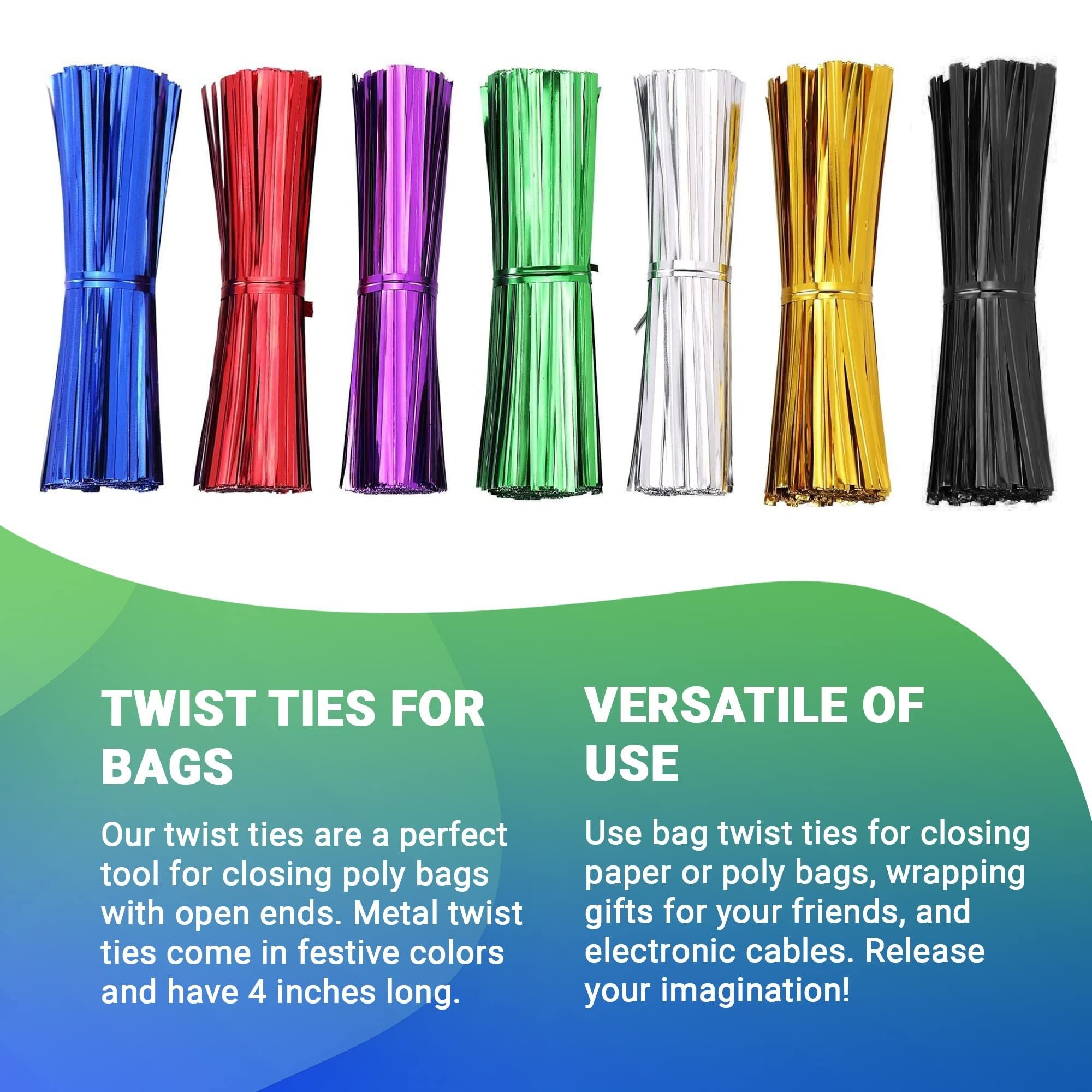 1.Pack of 1000 Metallic Twist Ties, 4 Inches. Discover the perfect blend of elegance and functionality with metal twist ties. Decorative twist ties are ideal for adding a sophisticated touch to any packaging, their glossy Purpe finish elevates your gift presentation effortlessly.