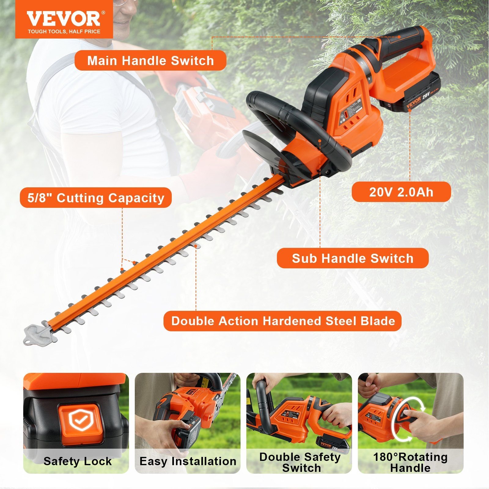 4.Double Safety Switches: Your safety is our priority. We have equipped our hedge trimmer cordless with both a main handle switch and a sub-handle switch for secure operation. When you release either switch, the blade immediately stops, providing improved control and safety.